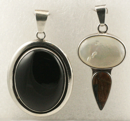 Charles Albert Fine Sterling Onyx & Mother Of Pearl Pendants Handcrafted Mexico