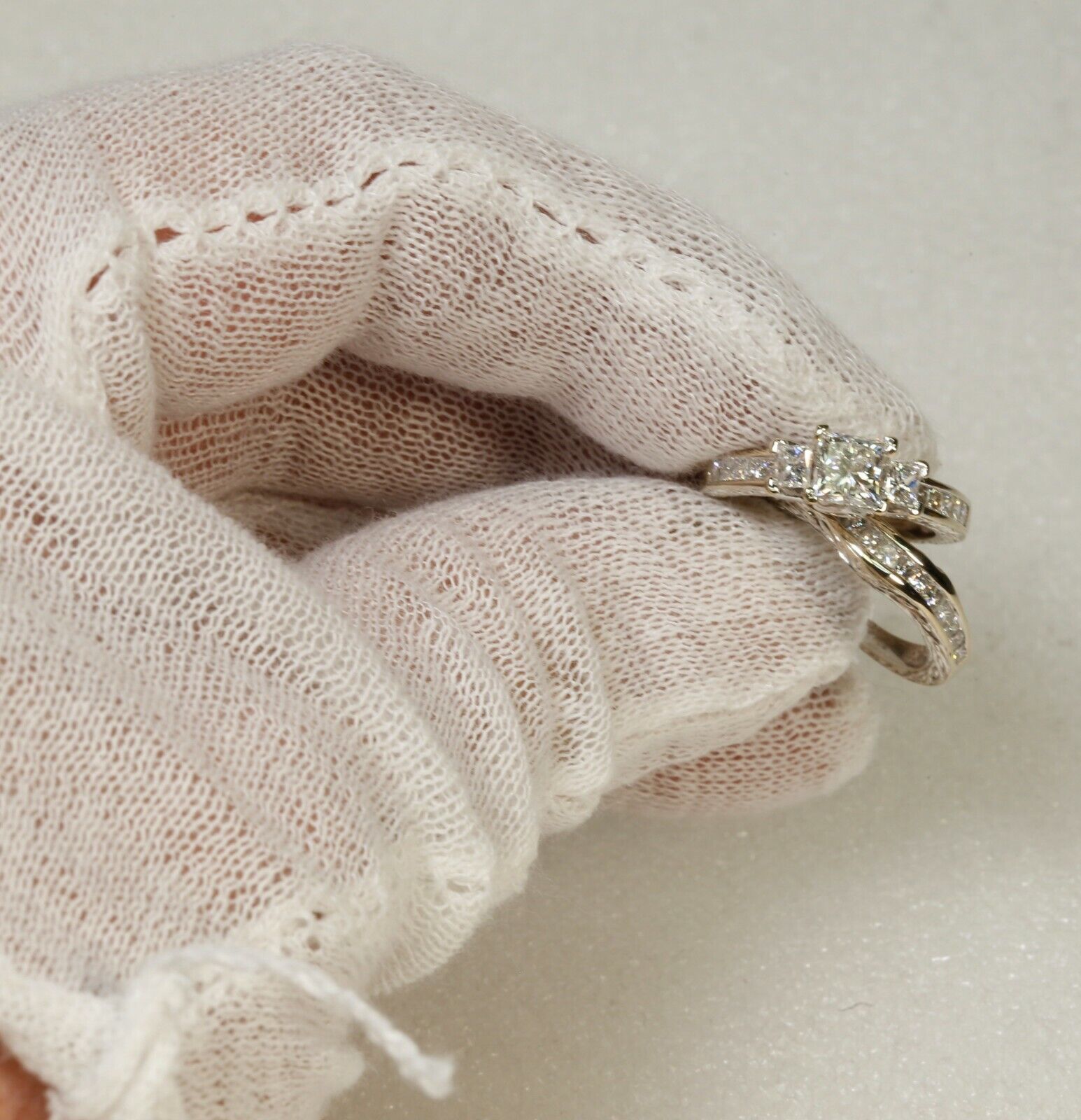 2.00 Carat TW Princess Wedding Set ¾ Carat Center GIA Report Laser Inscribed 18K White Gold Size 4