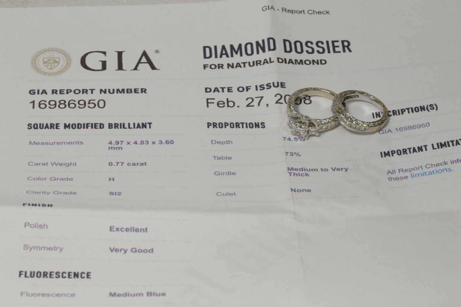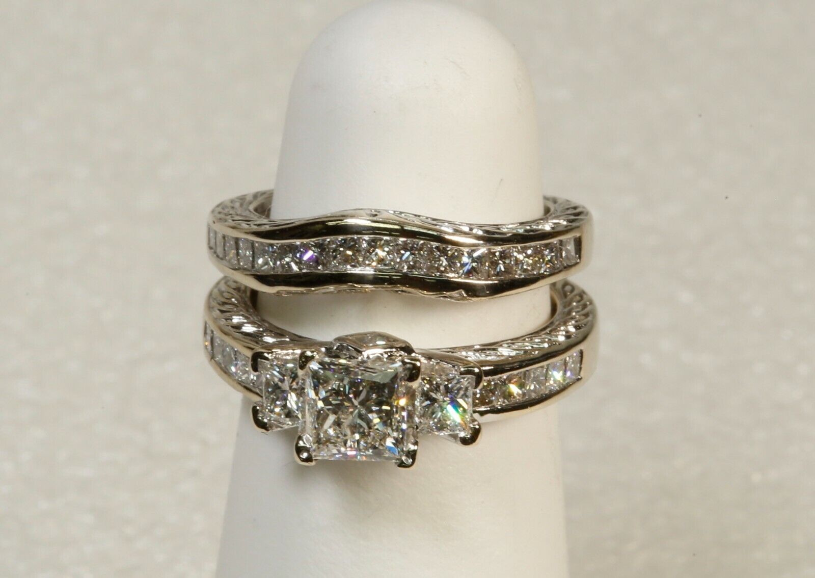 2.00 Ct TW Princess Wedding Set ¾ Ct Center GIA Report Laser Inscribed 18K Sz 4