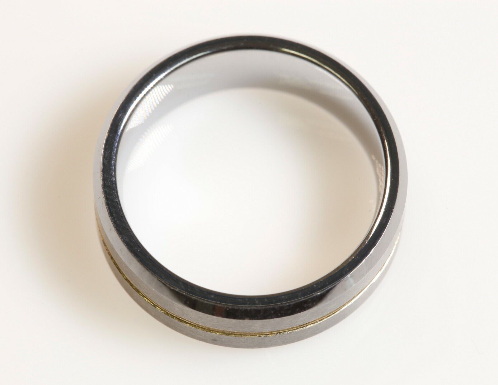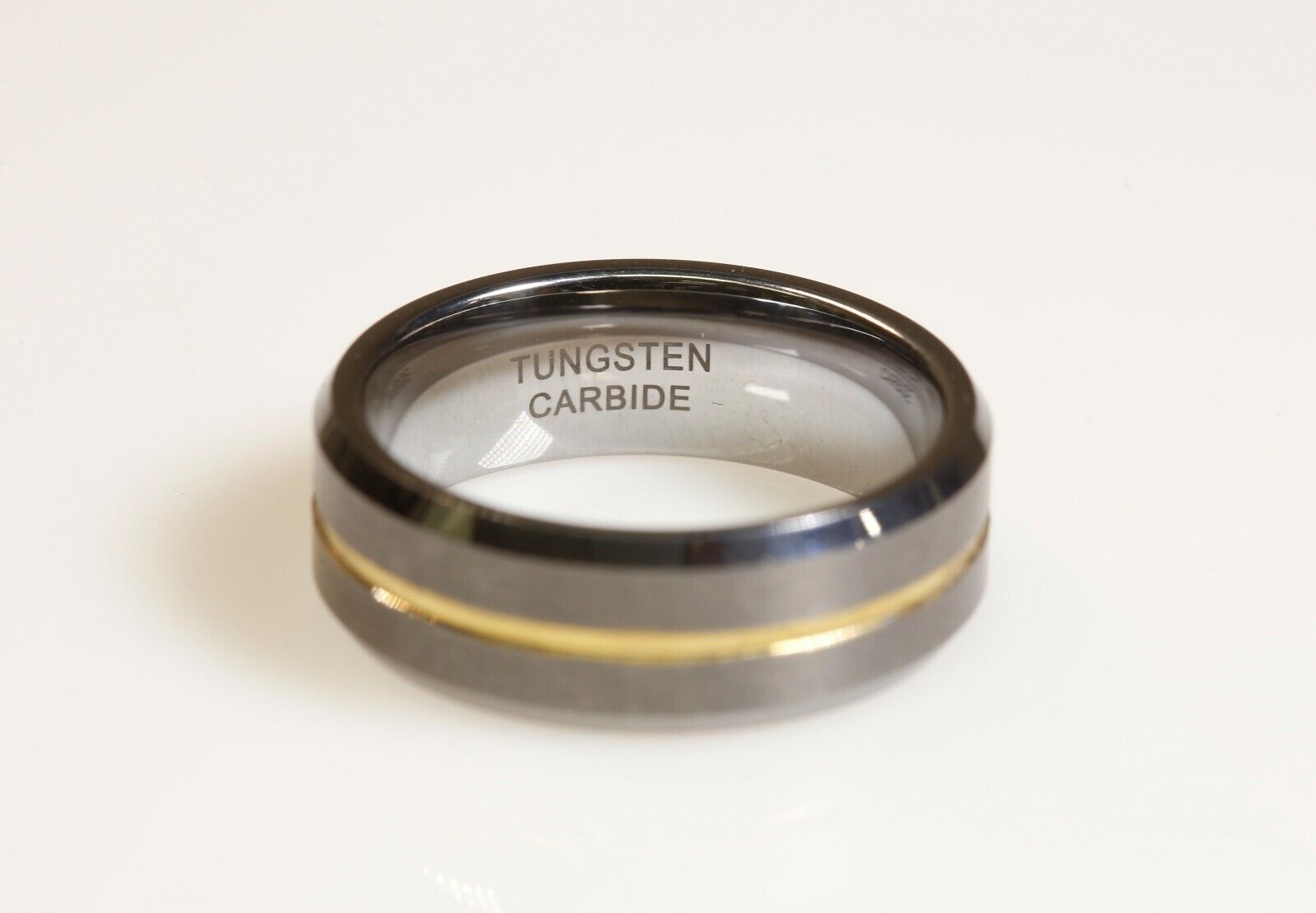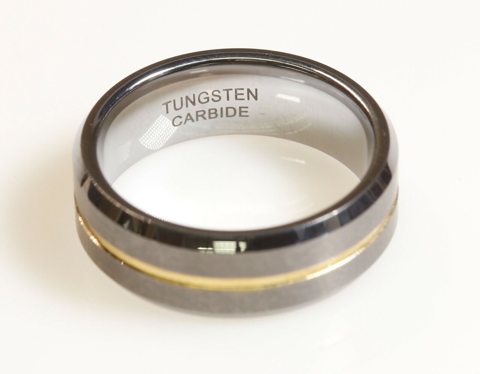 Metal: Tungsten Carbide (Gold strip is likely a thick plate)