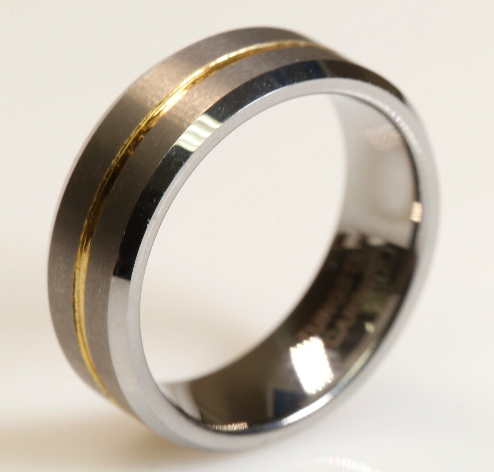 2-Tone Tungsten Men's Wedding Band 8mm Wide Size 10.75