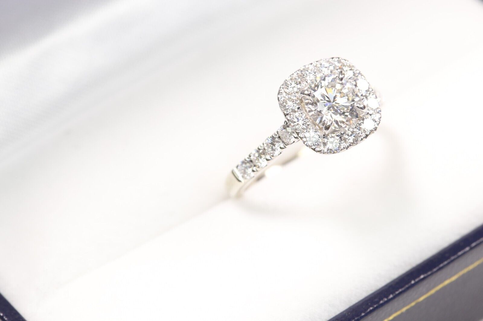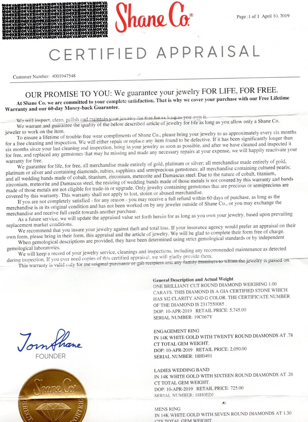 Shane Co Diamond Halo Ring 1 Ct Exc. Cut GIA + .78 Ct. 14K White Gold Size 6.5 WHOLESALE
