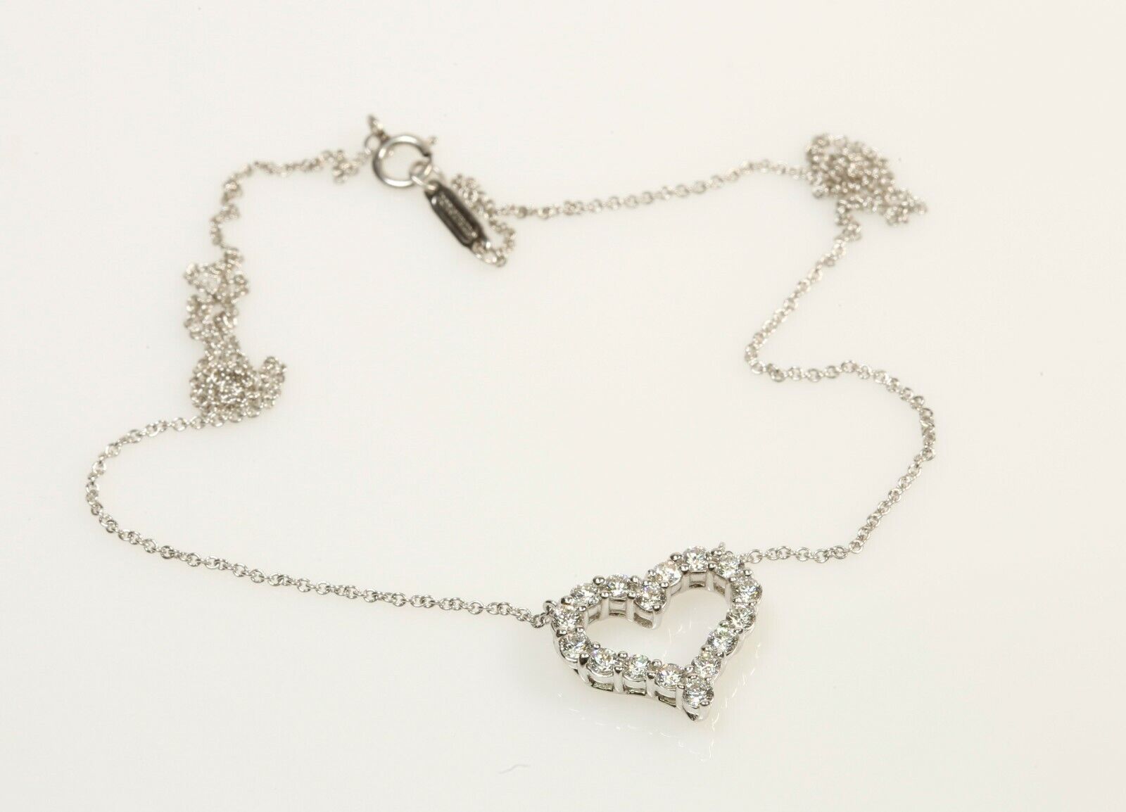 Tiffany & Co. Diamond Heart Platinum Pendant Necklace 16”